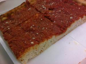 To try it, though, is to get it. Tomato pie is often served at room temperature, and I don’t think you really need it warmed up. The sauce is the key, and it stays with your taste buds for a while. Sure, the thick dough adds a lot of “empty calories,” but the soft texture works. Best of all, at neighborhood places in South Philadelphia, Conshohocken and Northeast Philly, tomato pies are pretty cheap for the quantity you get. Paying $3.60 for a quarter slab from Conshohocken Bakery feeds you for two lunches.