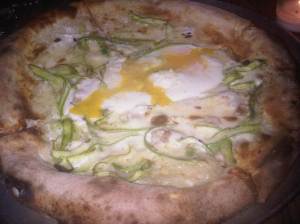 l wood-fired pizzas on the menu, with some rotating specials as well. The pizzas are cooked at about 800 degrees. I chose the Asparago, which contains shaved asparagus, barbuzzo pancetta, secret white sauce, house stretched fior di latte, truffle and farm egg. Not much can be said about the pizza other than to praise it for its flavors. The egg is also a little runny, and you pretty much have to eat it with your knife and fork. It is, however, fantastic.