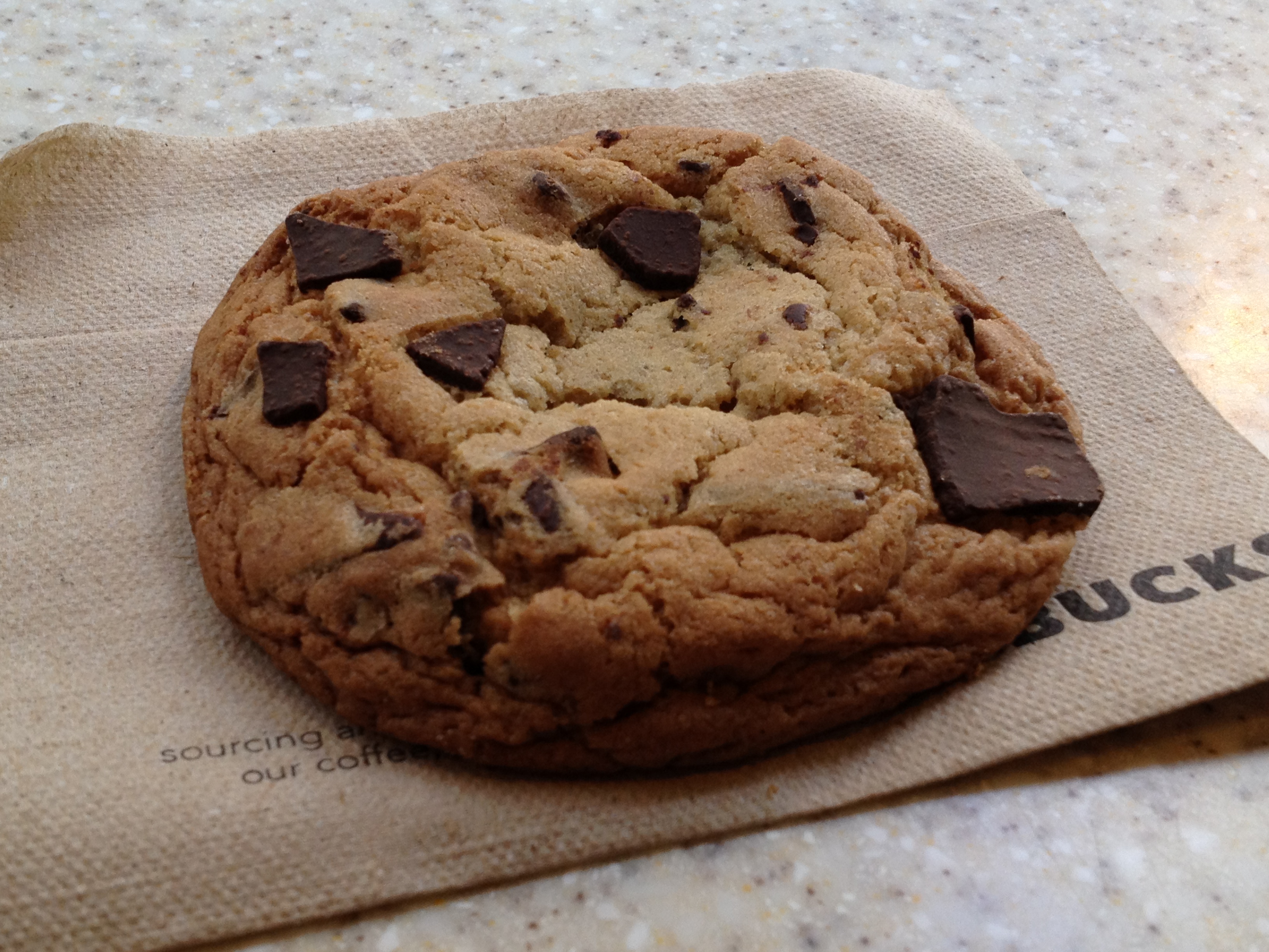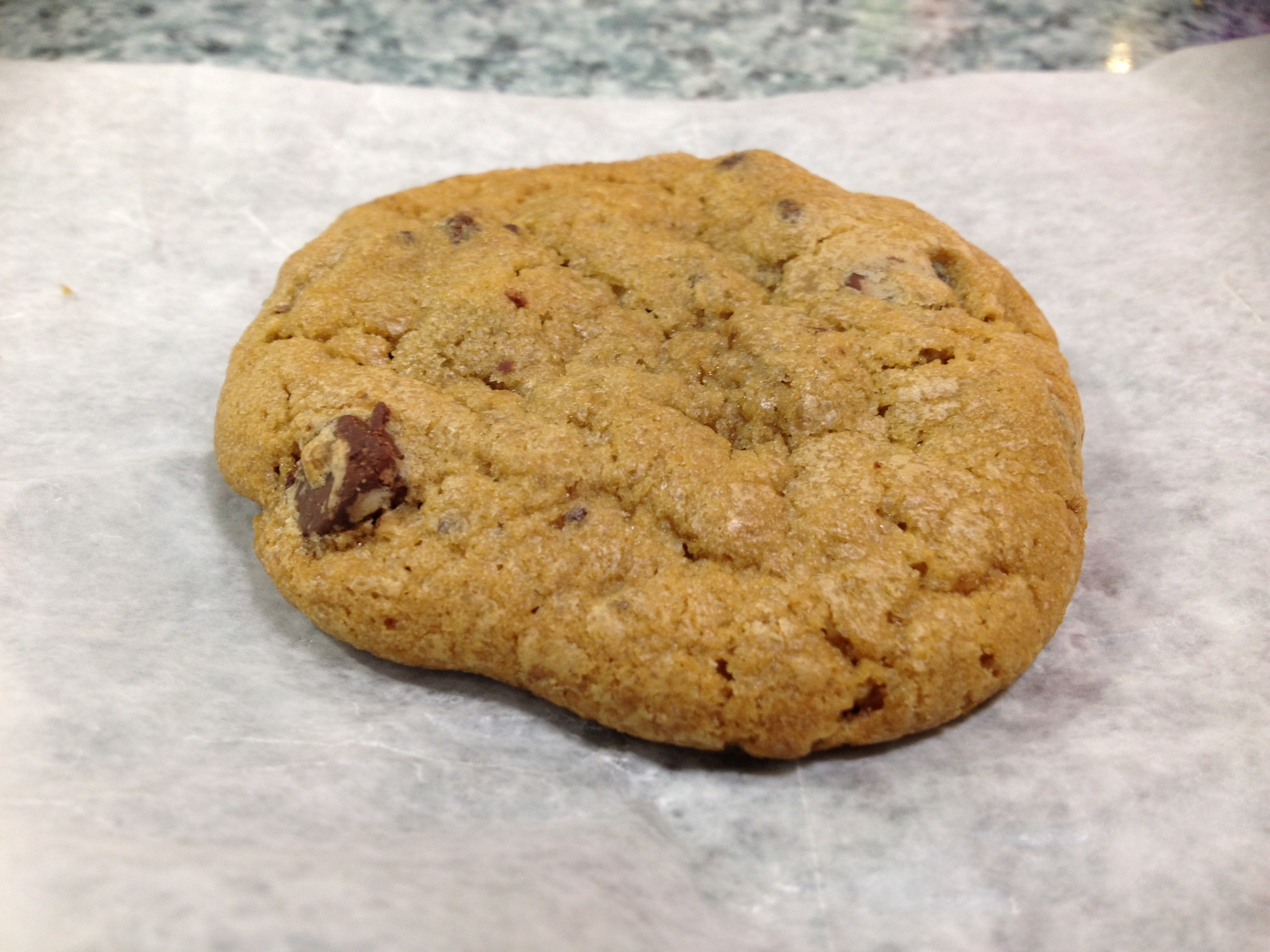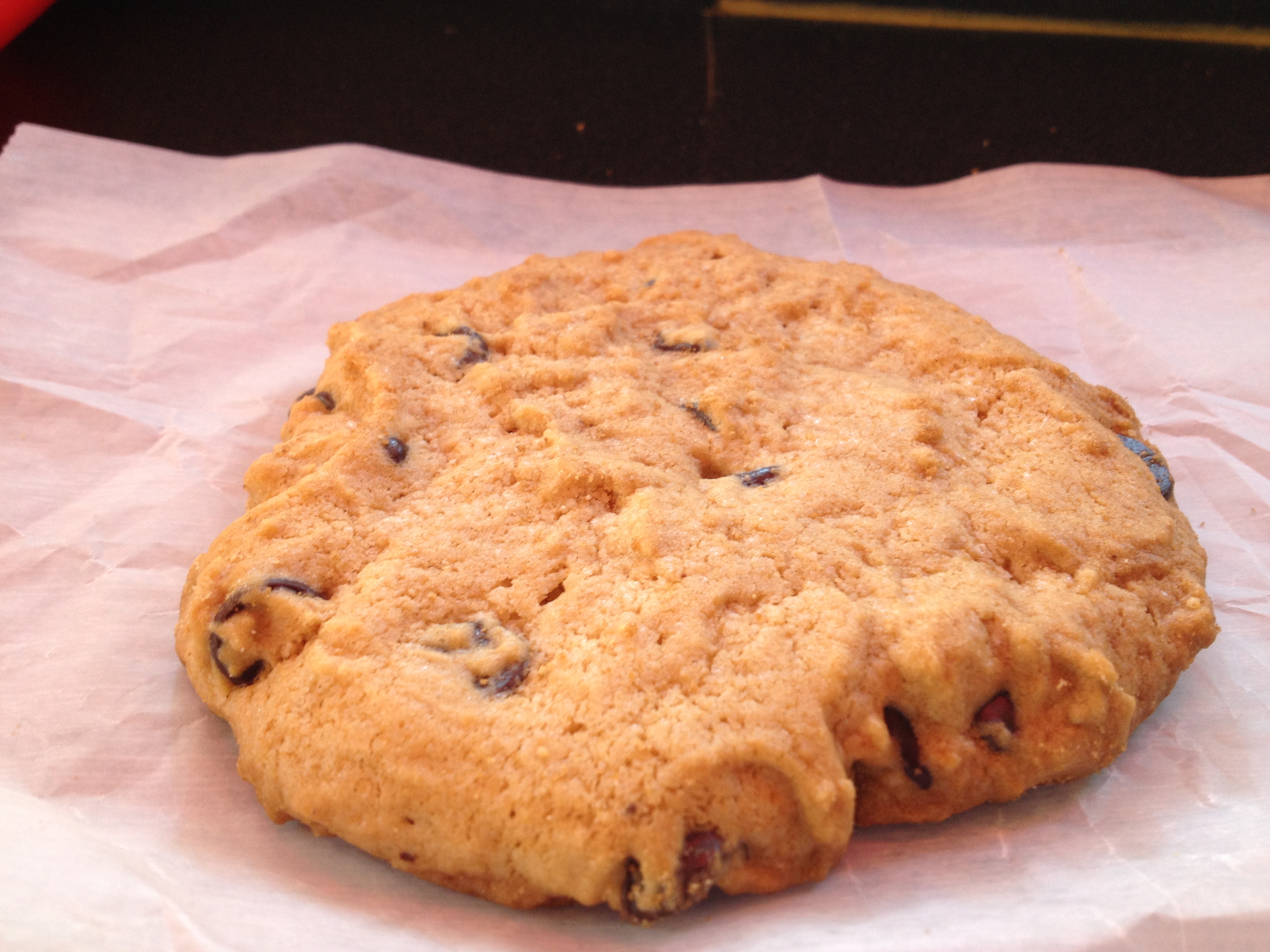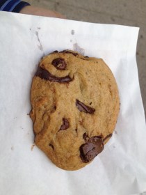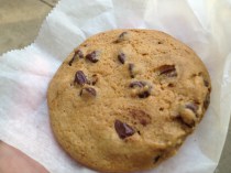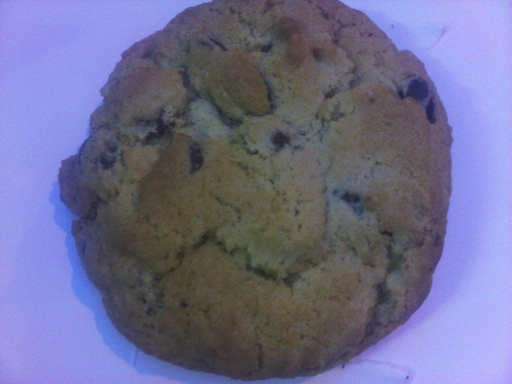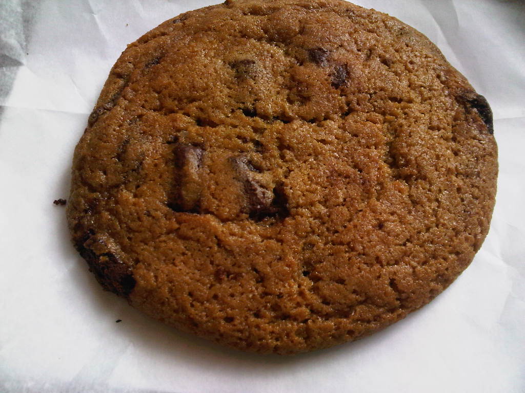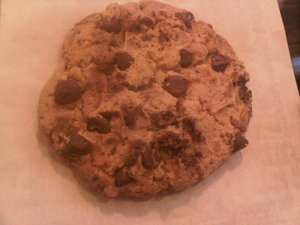 Size and Appearance: It’s an enormous cookie yet still light.  Big chocolate chunks are all over the surface.  The cookie is also thick though not too thick.