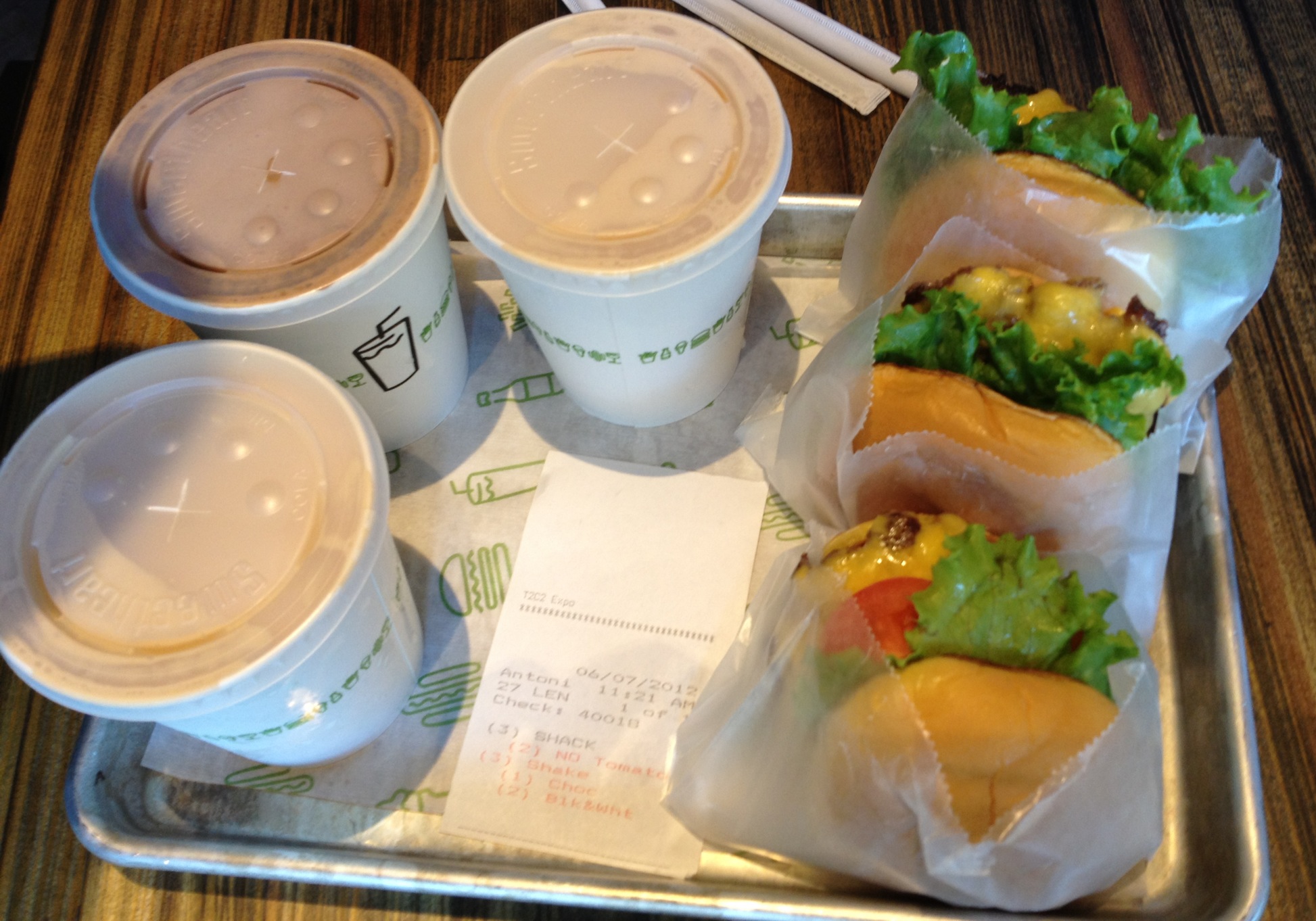 I first had Shake Shack at its CitiField in Queens, and I’ve also been to the Madison Square Park location, where it first started. Long lines are the norm in those other locations, so people here will have to get used to waiting to order up their burgers, fries, shakes and custards (though there is a separate line if you just want to order cold items). But the food is worth the wait.