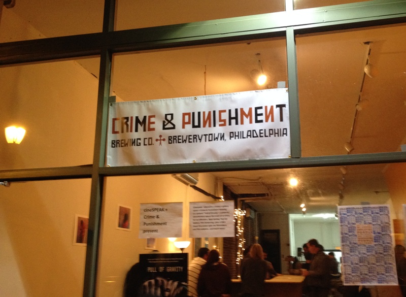 At a beer sampling and film screening it hosted at its storefront space on Girard Avenue, Crime & Punishment had three beers pouring, including the brand new Pull of Gravity (a pale ale with some bite named after the film being screened), Double Jeopardy (a dunkelwizen) and 100 IBUs to Life (a fresh-tasting imperial IPA).